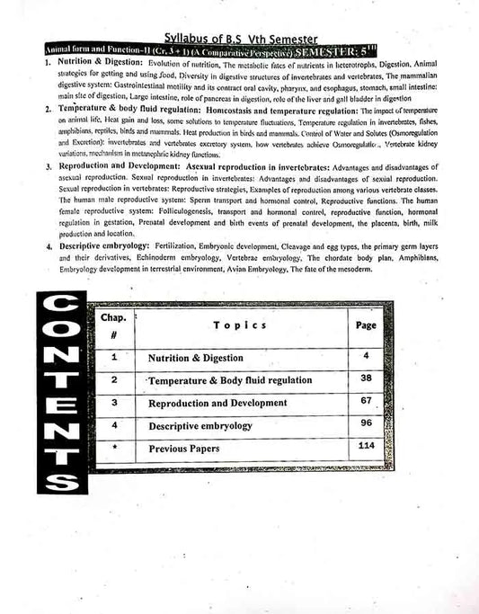 Vendor:Multan Kitab GharHoney A Textbook of Animal Form Function-II for B.S (4 Years) Botany, Zoology 5th Semester By Prof Dr M Khalid