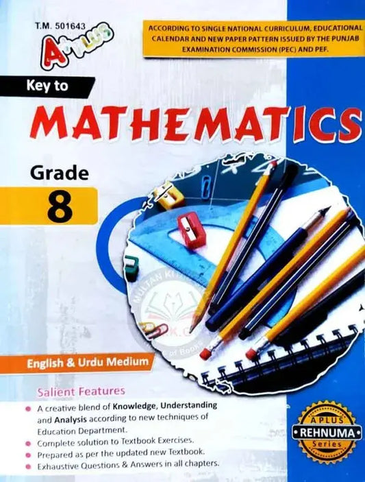 Vendor:A PlusA Plus Key to Mathematics | Grade 8 | English & Urdu Medium | Punjab Textbook Board