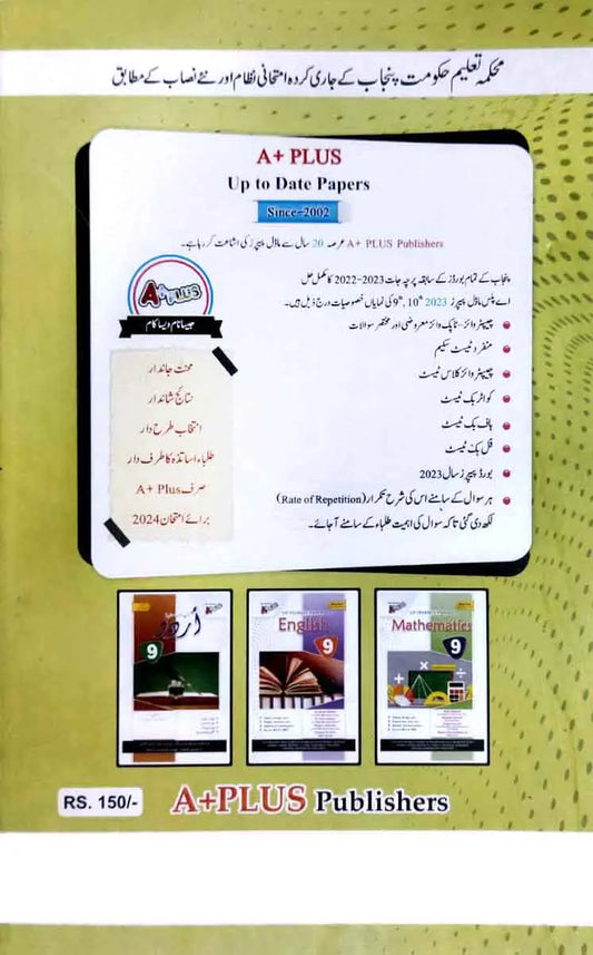 Vendor:A PLUSA Plus Mutalia Pakistan 9th Class Up-To-Date Solved Papers Urdu Medium