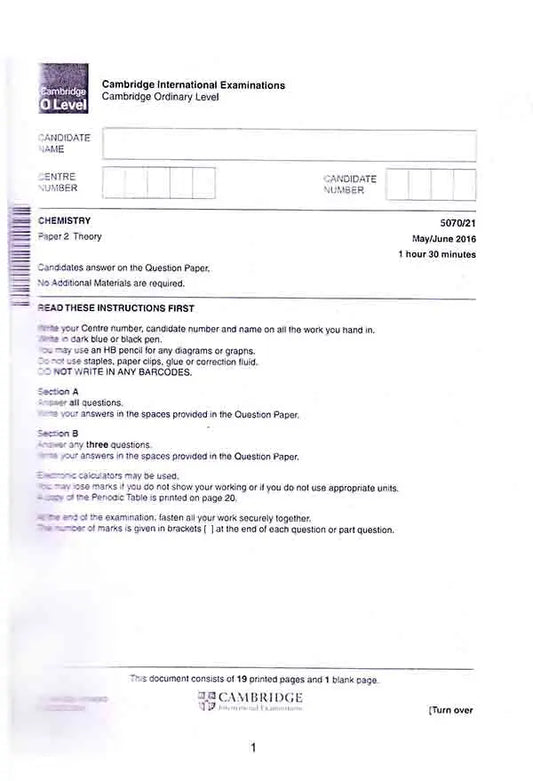 Vendor:Multan Kitab GharCambridge O level Chemistry 5070 Paper2 2016-2022 by kamil Books
