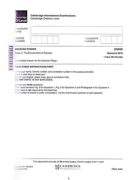 Vendor:Multan Kitab GharCambridge O level Pakistan Studies 2059 Paper 1 Past papers 2015-2022