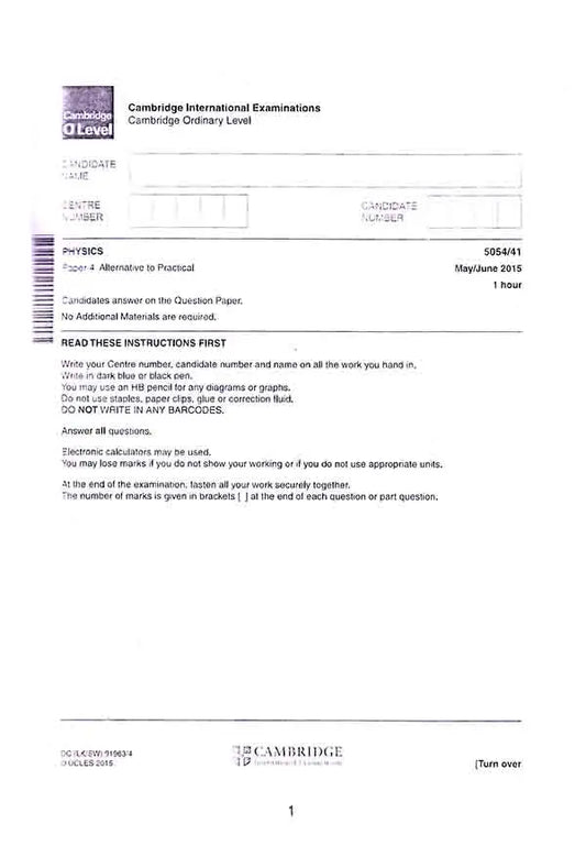 Vendor:Multan Kitab GharCambridge O level Physics 5054 Paper 1 Past Papers 2015-2022 Book by Kamil