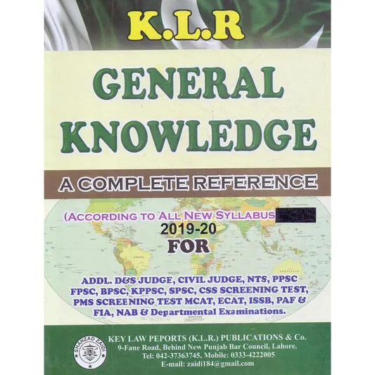 Vendor:Multan Kitab GharK.L.R General Knowledge 2019-20 Book for ADDL, Civl Judge, by S.A Raza