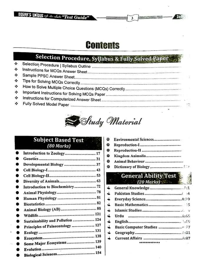 Lecturer Zoology Objective MCQs Subject Specialist...